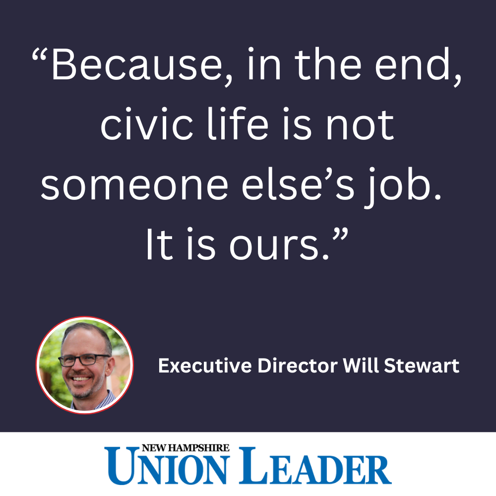In this October 2, 2025, Union Leader op-ed, LNH Executive Director Will Stewart reflects on Dr. Robert Putnam’s message to LNH in Jaffrey and the urgent need to rebuild trust, strengthen community, and renew civic life in New Hampshire. Read more.